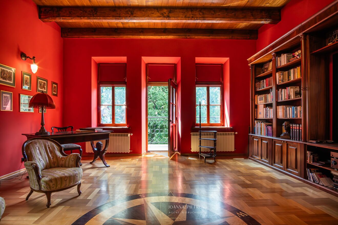 -ogromna biblioteka z wyjściem na balkon – idealna na strefę pracy lub odpoczynku